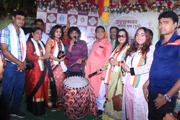 ঢাকের বাদ্যি দিয়ে পুজোর সূচনা করলেন পন্ডিত মল্লার ঘোষ। সঙ্গে ছিলেন কাব্যিক শিল্পী মল্লিকা ঘোষ, চিত্র পরিচালিকা ও প্রযোজক শিউলি রামানি গোমস, ফুটবলার হোসেন মোস্তাফি, হাবিবুর রহমান, মডেল সোনিয়া অ্যাঙ্গেস রামানি, গায়িকা অনামিকা ঘোষ সহ বিশিষ্টজনেরা। সমগ্র অনুষ্ঠানটি সঞ্চালনায় ছিলেন মৌ ভট্টাচার্য।