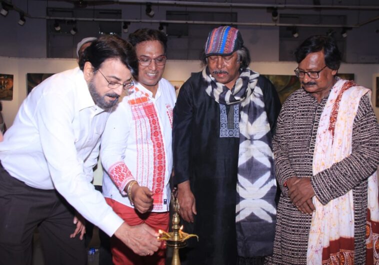 Renowned artist Rabin Bar’s solo exhibition, hosted at the North Gallery of the ‘Academy of Fine Arts,’ has kicked off with a burst of colors and creativity. The exhibition, a captivating exploration of theology and artistry, particularly focused on Krishna’s life, promises a unique and immersive experience for visitors. The collection, comprising an impressive 113 paintings in various mediums, showcases Bar’s creative prowess and imaginative interpretations of spiritual themes.