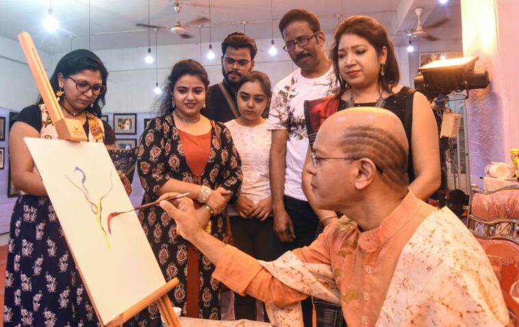 কথায় আছে যিনি রাঁধেন তিনি চুলও বাঁধেন।ঠিক তেমনটাই করে দেখালেন বিশিষ্ট নৃত্যশিল্পী সুদর্শন চক্রবর্তী।মাই ক্যালাইড্যাসকোপ আয়োজিত চিত্র প্রদর্শনীতে গিয়ে হাতে তুলে নিলেন প্যালেট,তুলি ক্যানভাসে আঁকলেন ছবি নিজের মনের খেয়ালে।প্রদর্শনীতে তখন সবার চোখ সুদর্শন চক্রবর্তীর আঁকার দিকে।
